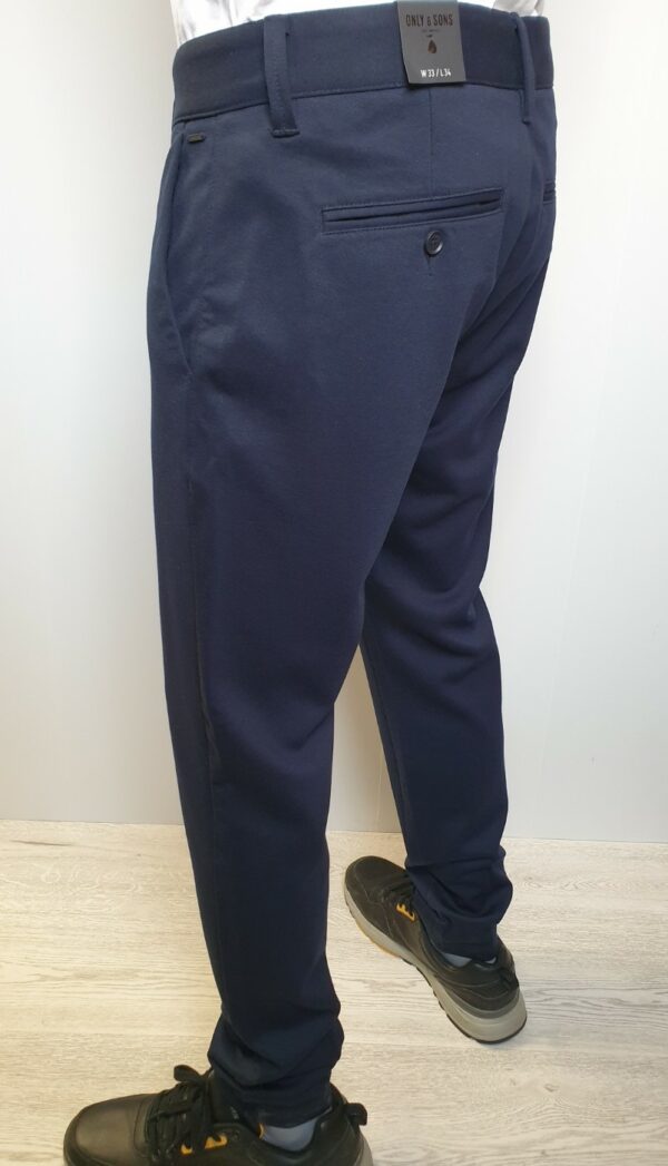 Свободного стиля мужские брюки из Only & Sons колекции. Высококачественный мягкий эластичный материал. Застежка на пуговицу и молнию спереди. Модель со средней высотой талии. Немного зауженные концы. Два боковых и два кармана сзади.