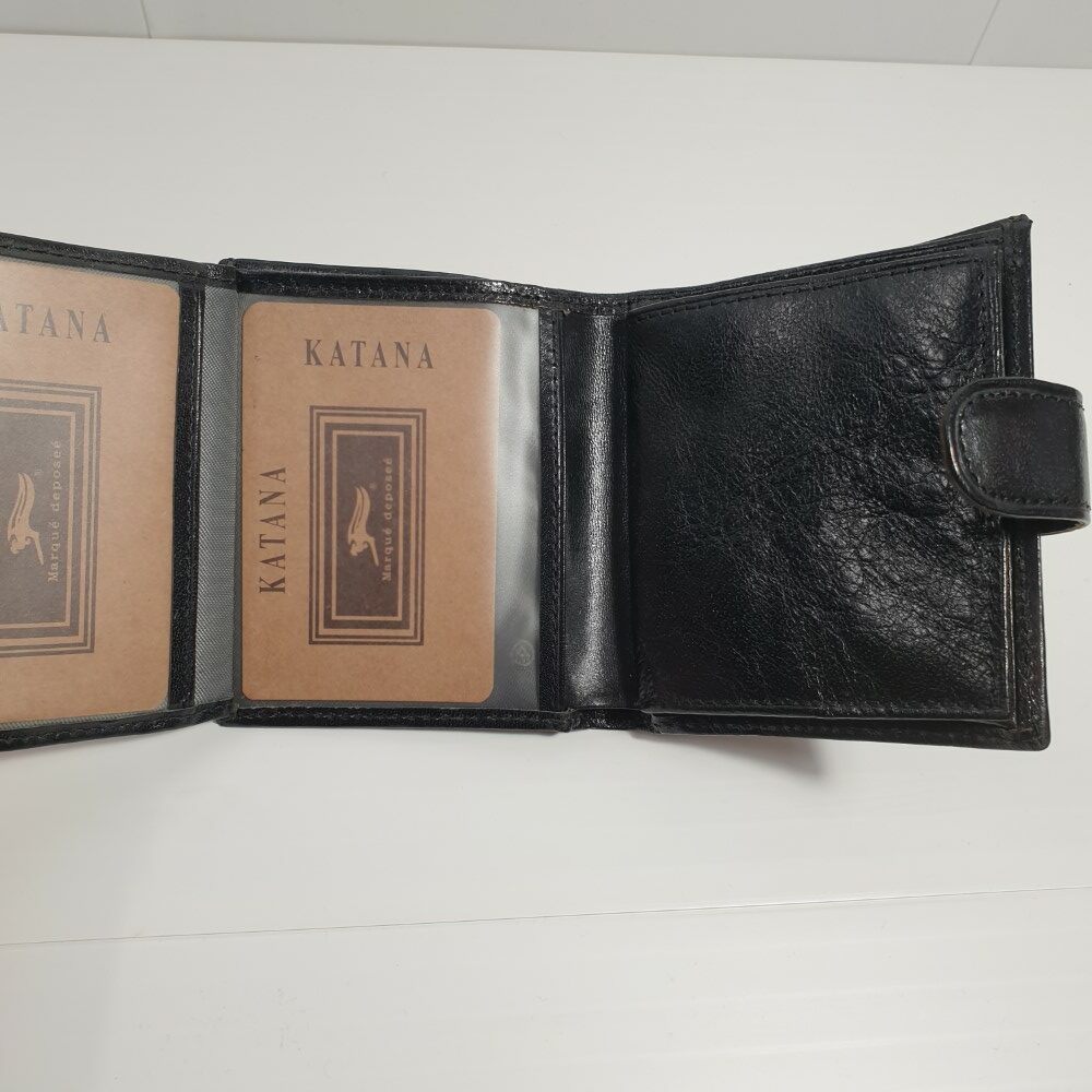 Vīriešu maks no Katana kolekcijas ir izgatavots no augstas kvalitātes dabīgas ādas. Modelis ar spiedpogas aizdari. 2 nodalījumi banknotēm un 3 kabatiņas kartēm. Kabata monētām ar pārloku un spiedpogas aizdari. Maka izmērs: 9×10 cm