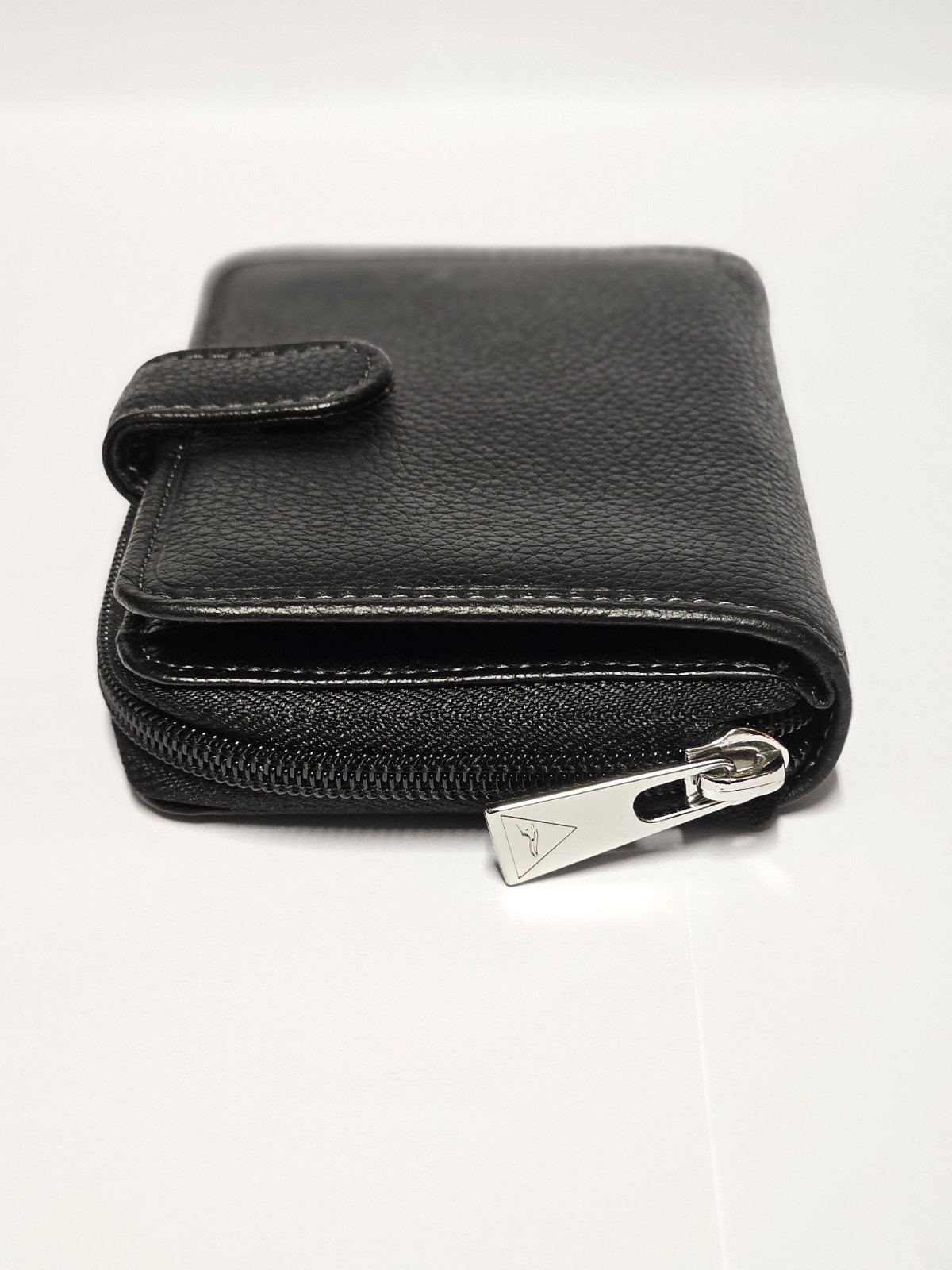Женский кошелек из коллекции французского бренда Katana. Натуральная кожа. Застежка-молния с 2 отделениями для монет, 1 отделение для бумажных денег, 5 карманов для кредитных карт. Размер кошелька: 13×9,5×3,5 см