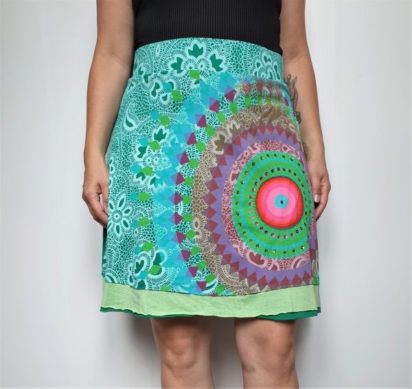 SЮбка с декором из коллекции Desigual. На талии вшита резинка. Длина около 55 см. Обхват пояса от 86cm.