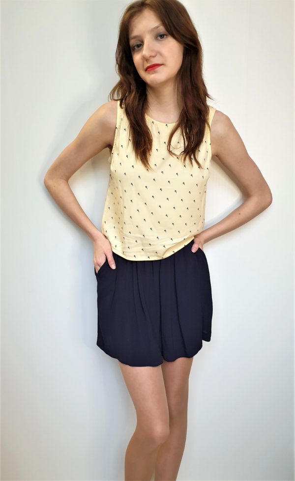 Svārki no Envii kolekcijas izgatavotas no augstvērtīga dabīga, plāna materiāla. Modelis ar kabatām. Jostas vietā iešūta gumija. Garums ap 40cm. Jostas apkārtmērs no 60cm.